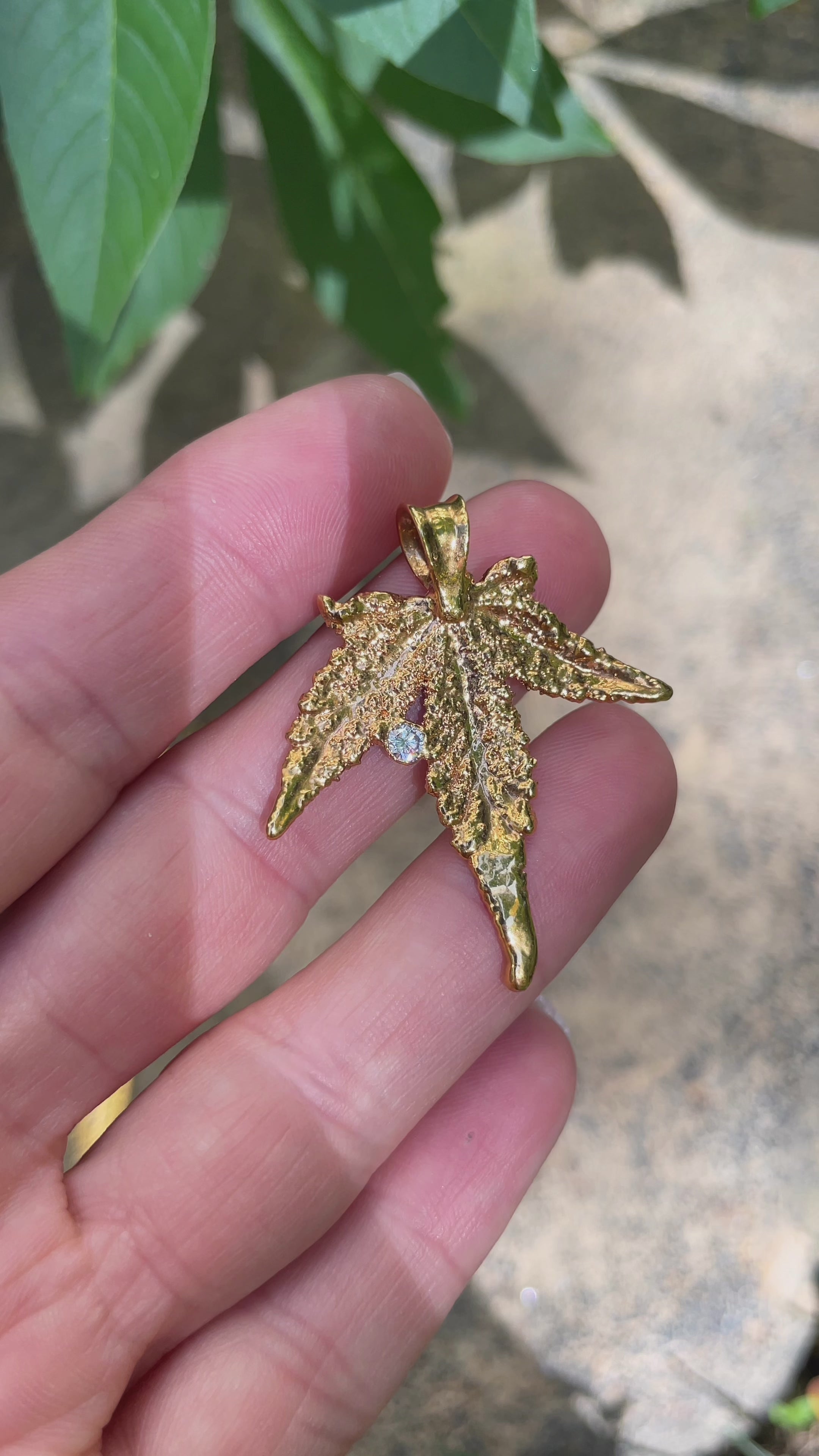 Real Cannabis sugar leaf dipped in 18k Gold.